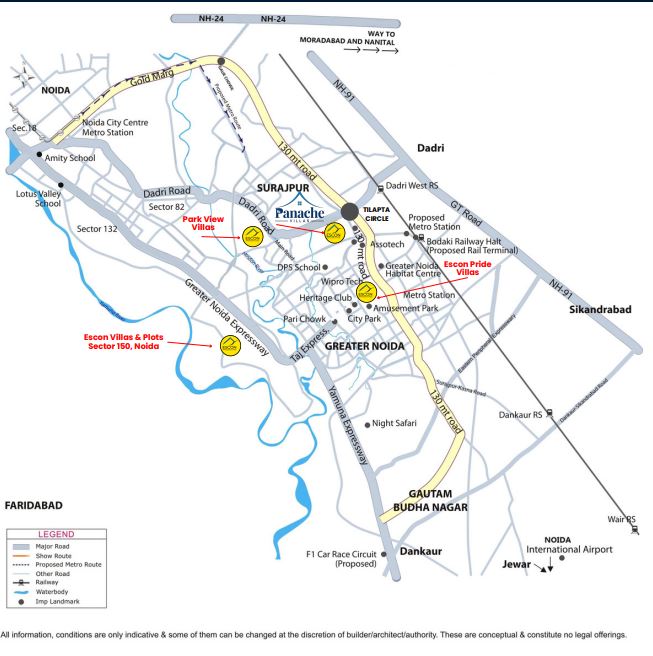 About Panache Escon Panache is the newly launched ultra luxurious residential property developed by Escon group. If you are thinking to mesmerize the lavishness around you, check out these magnificent villas in prime location of Greater Noida. If you are planning to buy 4 BHK elegant villas in Greater Noida, visit today to know more about the most amazing project for your luxury living. Enthrall with open space environment in your own garden by giving your kids a secure future. Call today to check the tranquilness of development. Embrace the serenity all around corners of development as this launch will not only amaze you but it will surely be a high impact on all buyers as this launch will be meeting all your requirements